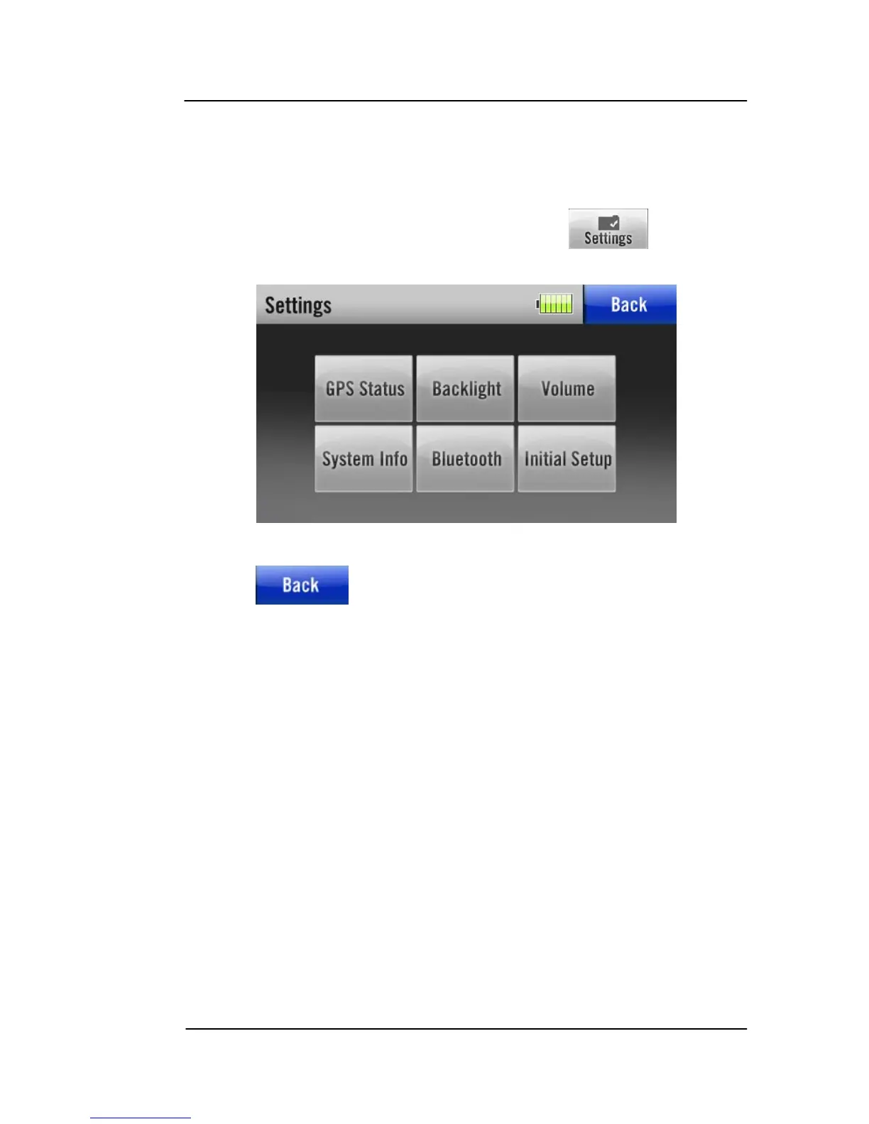 system settings in the Settings page. Tap the soft key on