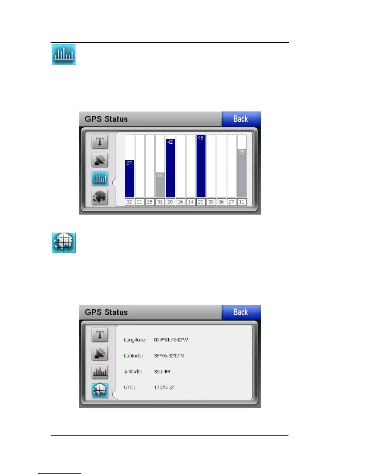 Figure 1-11: GPS Signal Strength Page – Locked and Unlocked
