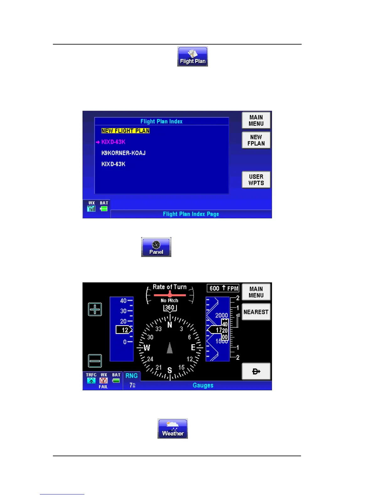 Main Menu to show the Flight Plan Index page. The Flight Plan