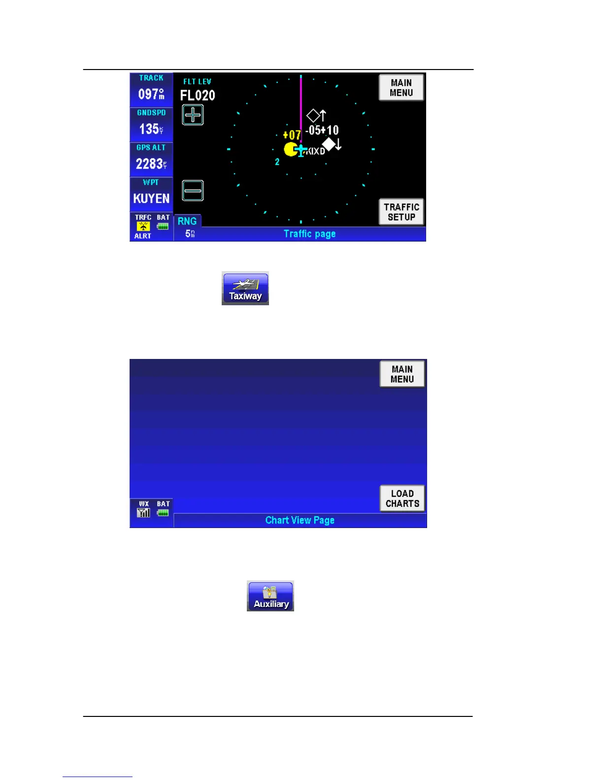 • Taxiway: Tap on the soft key on the Aviation Main Menu