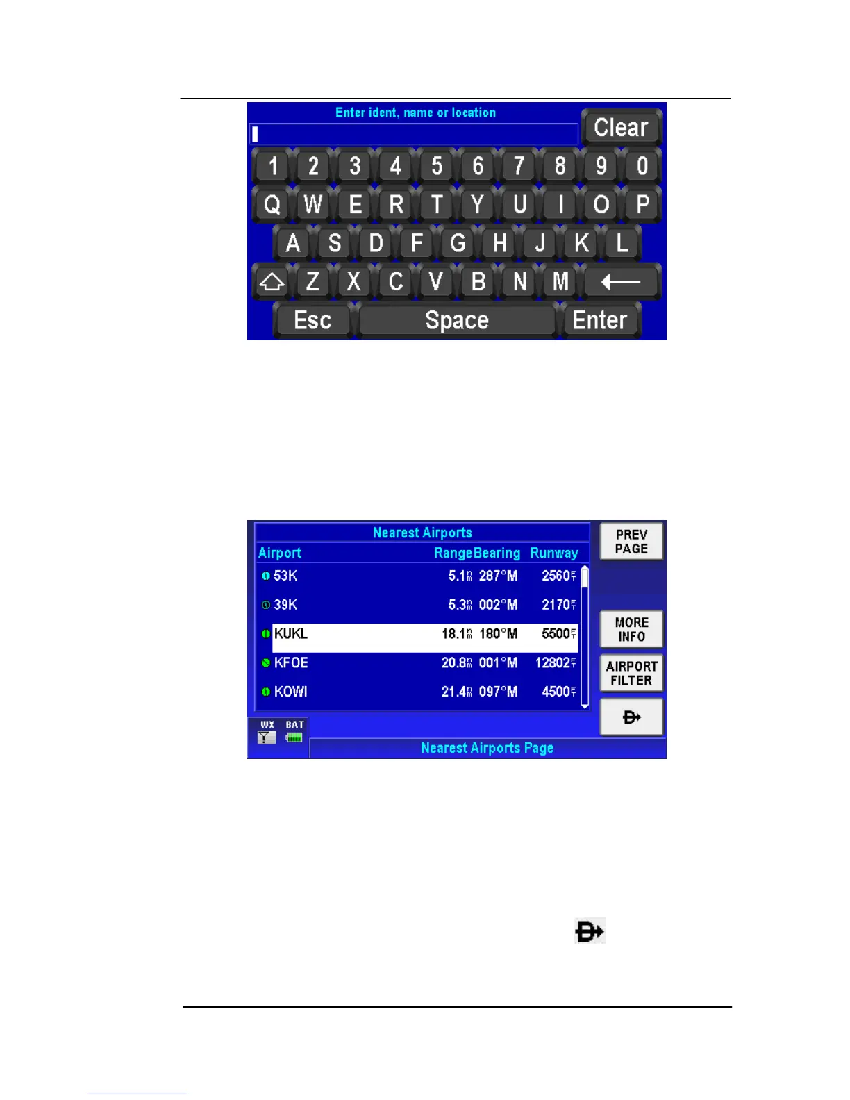 Nearest Airports selection and tap the SELECT soft key to show