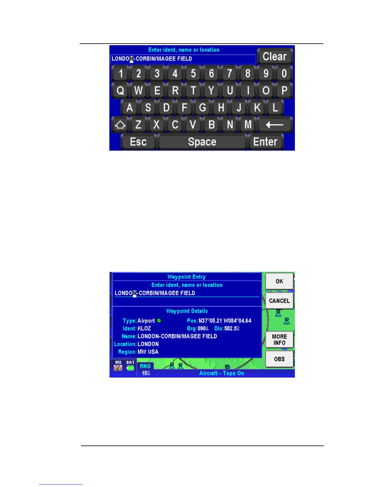 After the Enter key is tapped, a Waypoint Entry screen shows