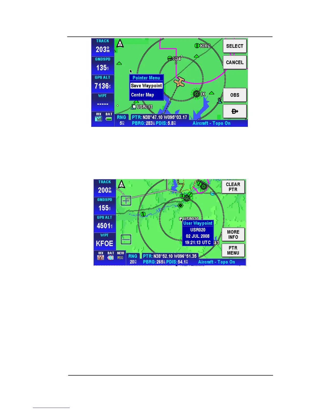 Figure 2-65: Map –PTR MENU – Save Waypoint