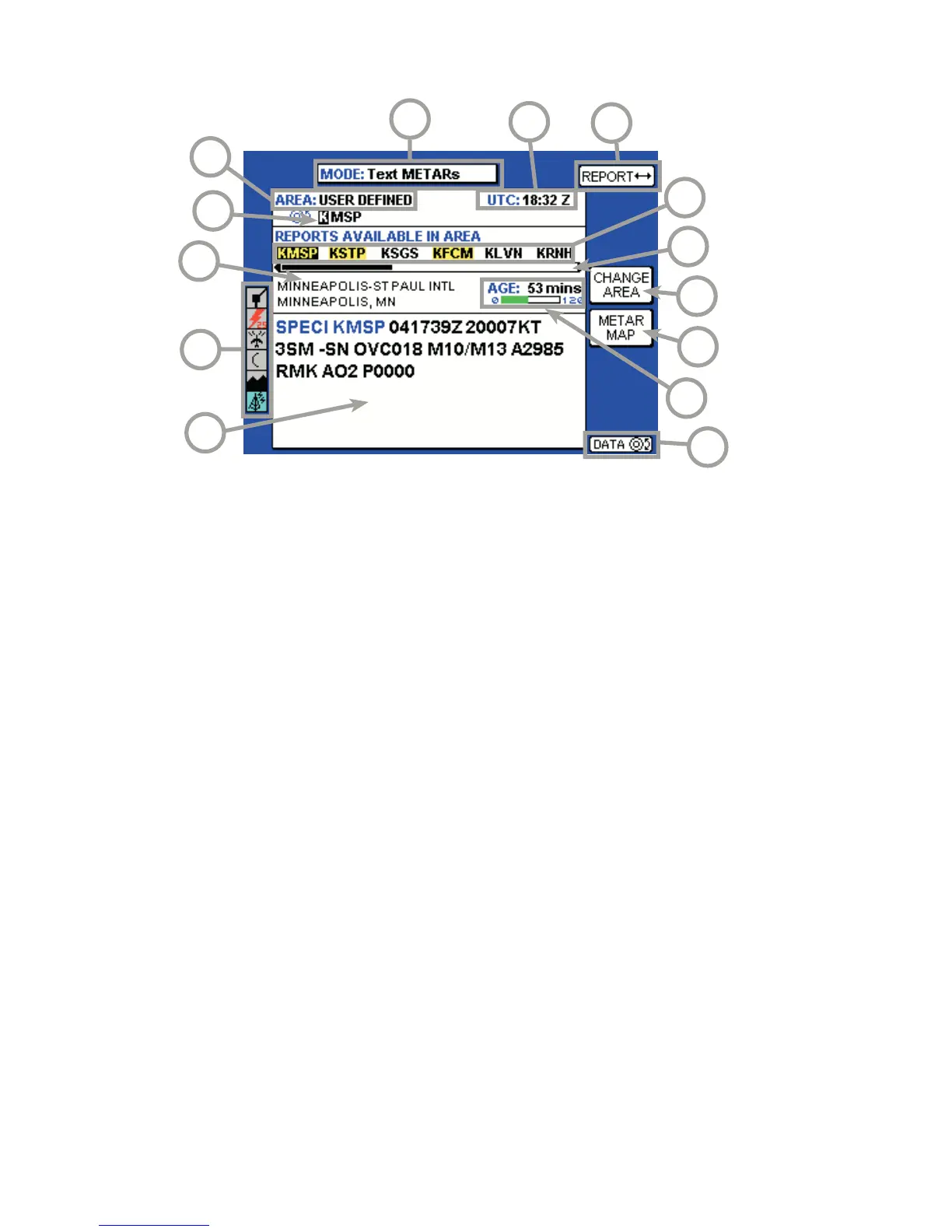 12 METAR Map Soft Key - When this key is pressed the graphical METAR
