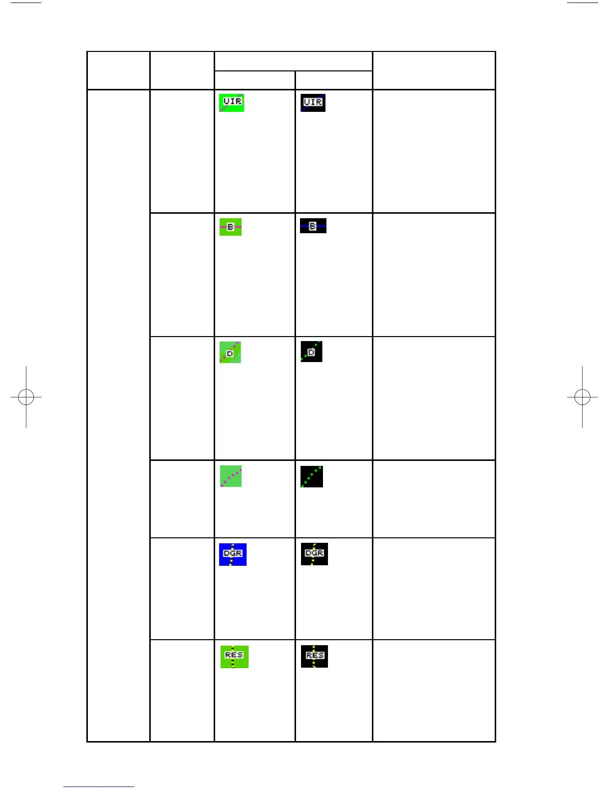 Feature Conditions Icon / Colors Other Characteristics