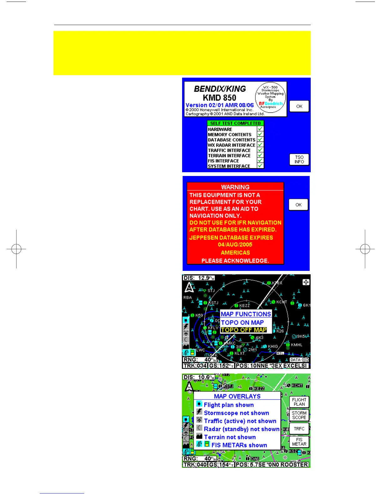 BENDIXKing KMD 550 - Startup Display; Pop-Up Help Displays