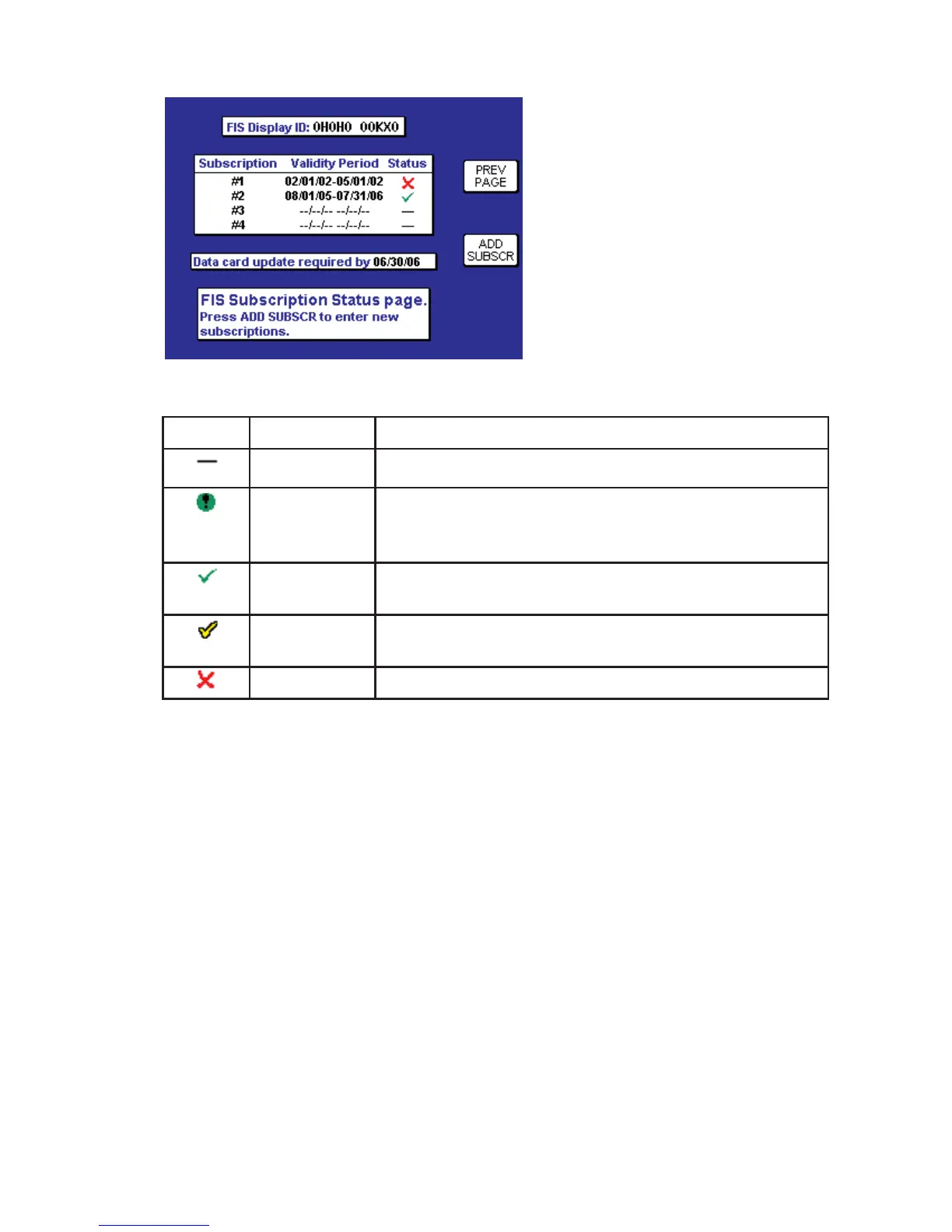 NOTE: Only the validity period for subscriptions is shown on the display. To