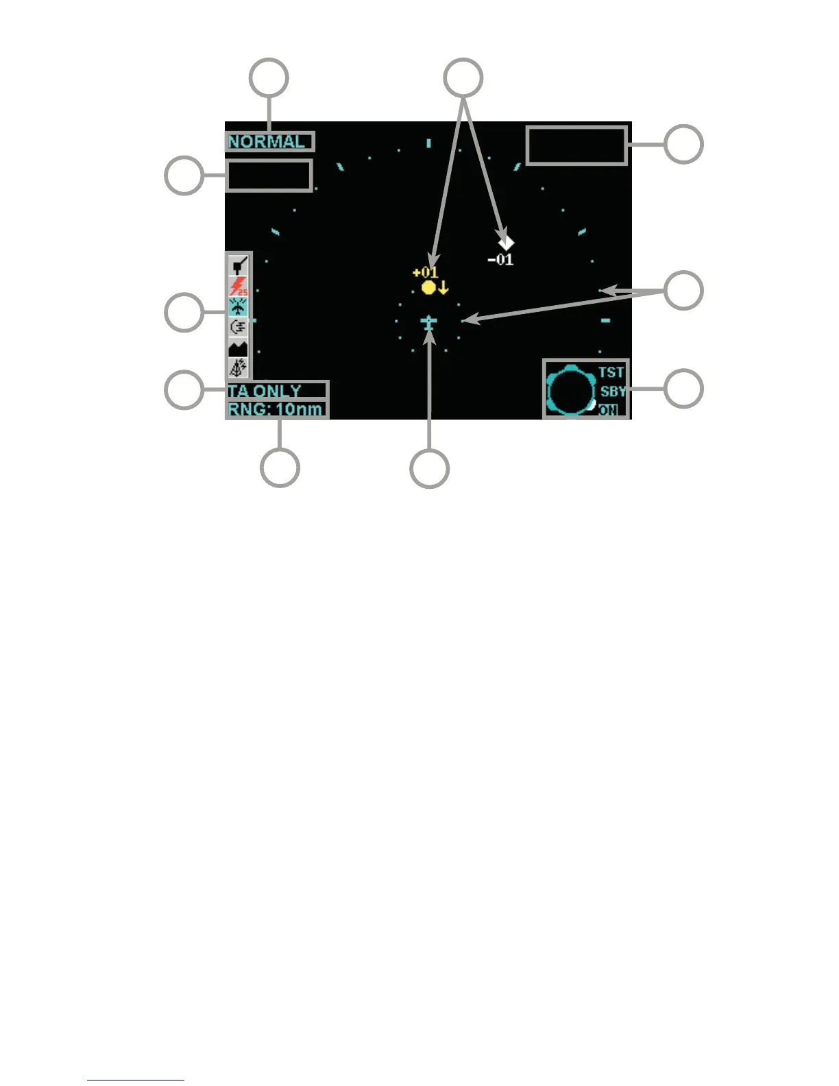 6 Traffic Intruder Symbols - Indicates type of traffic, altitude of traffic and