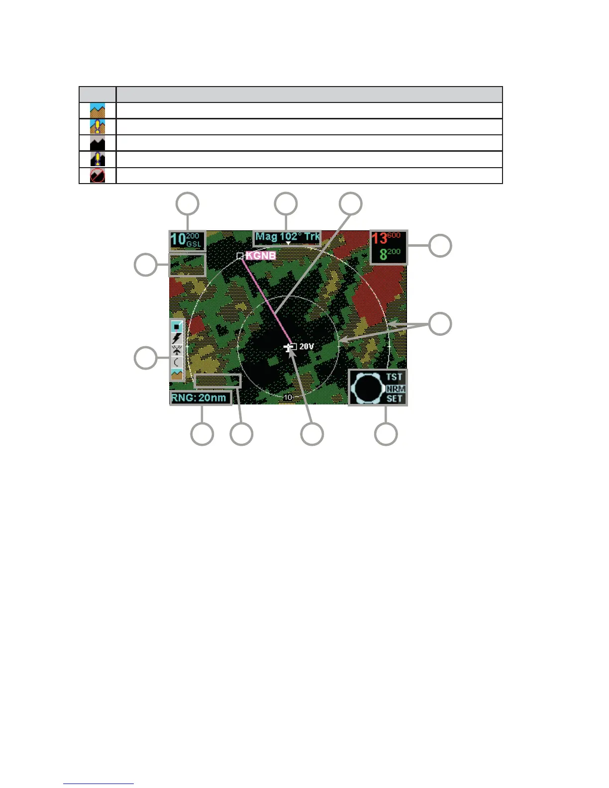 2 Terrain Awareness State - Displays EGPWS TEST when self-test is active, TERR