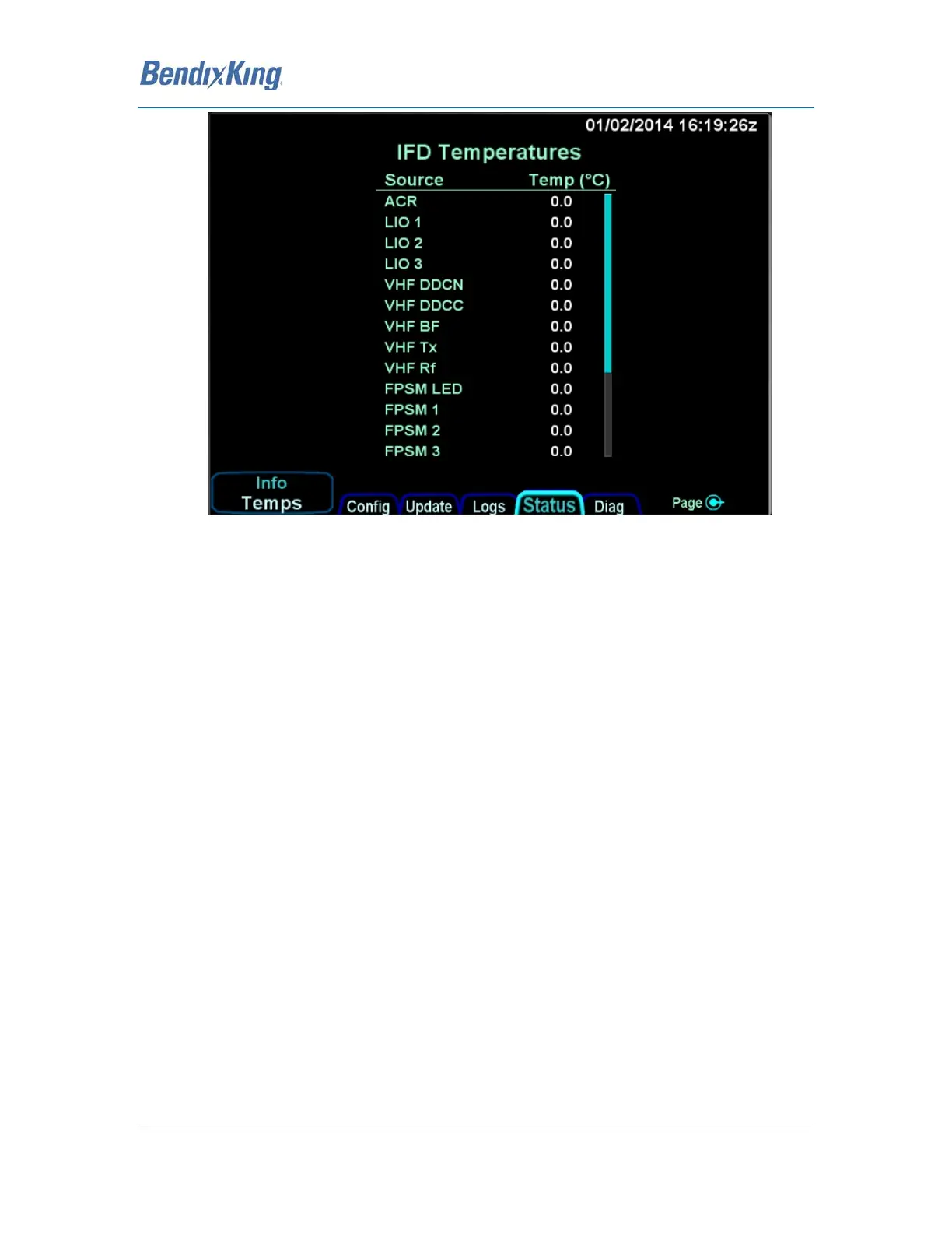 Figure 35 AeroNav Temperature Status Page