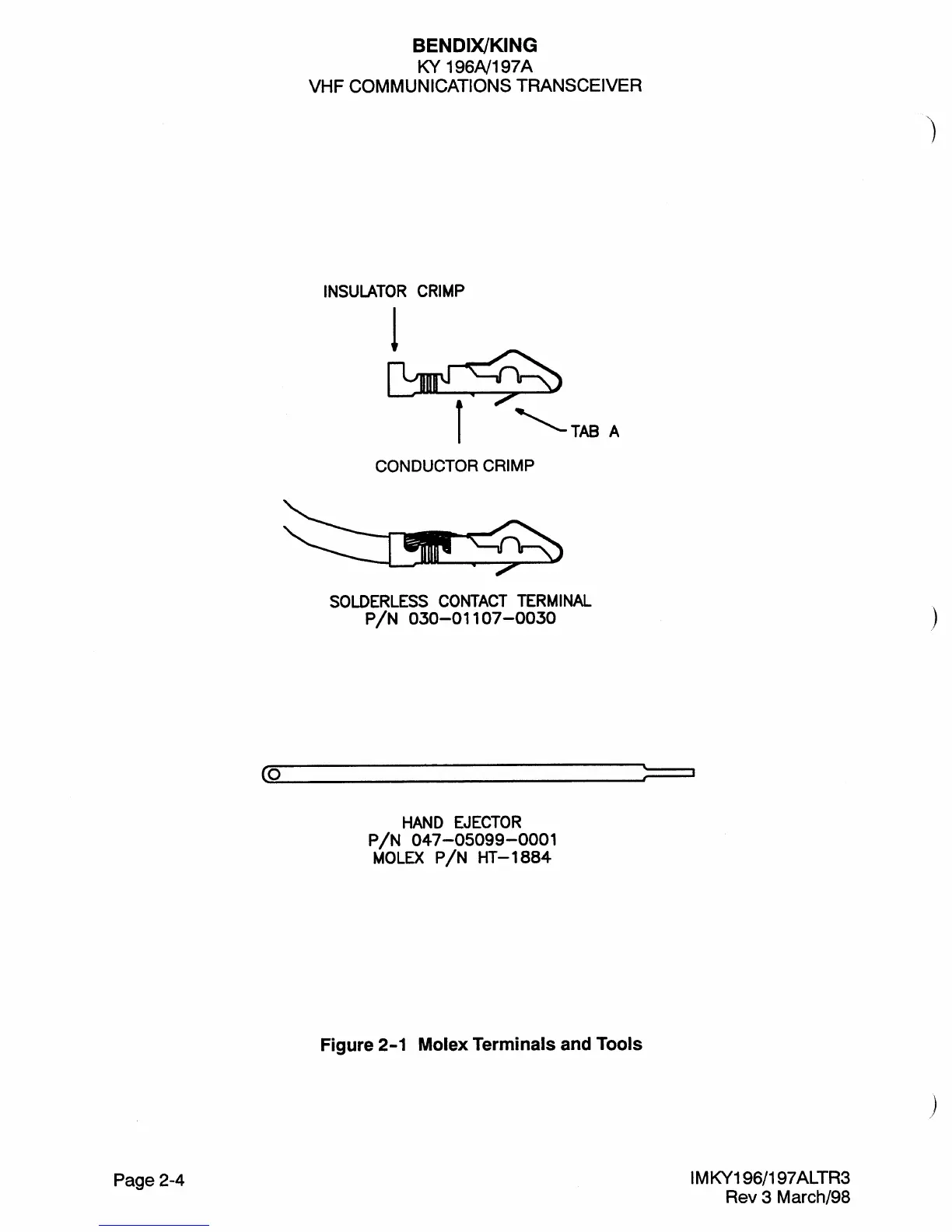 BENDIXKing KY 196A - Molex Terminals and Tools