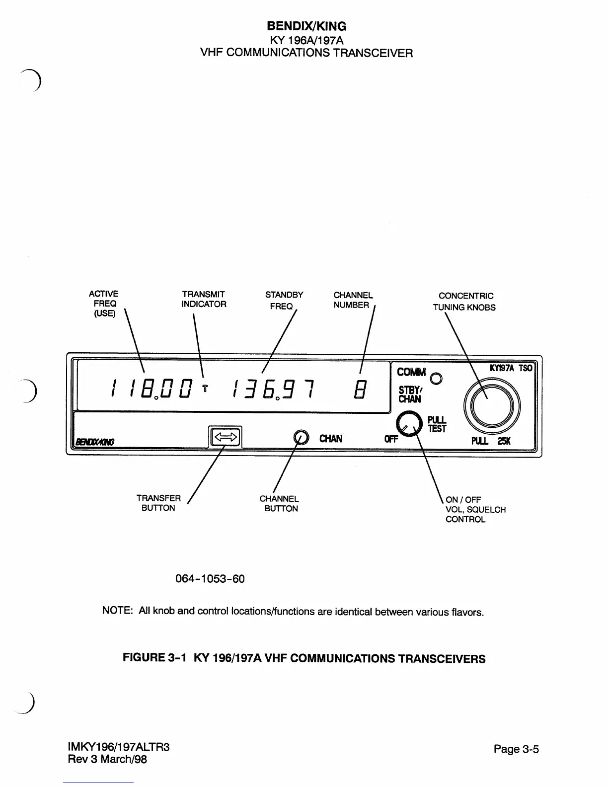 BENDIXKing KY 196A - KY 196;197 A VHF Communications Transceivers