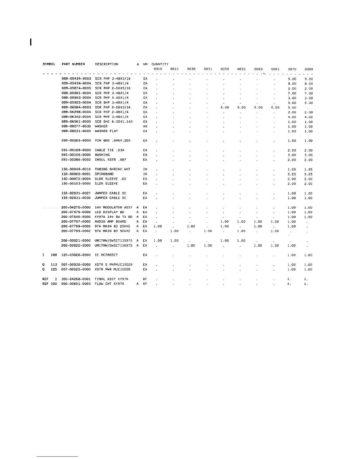 THIS PAGE CONTAINS OLD REVISION BOMS, FOR REFERENCE ONLY.