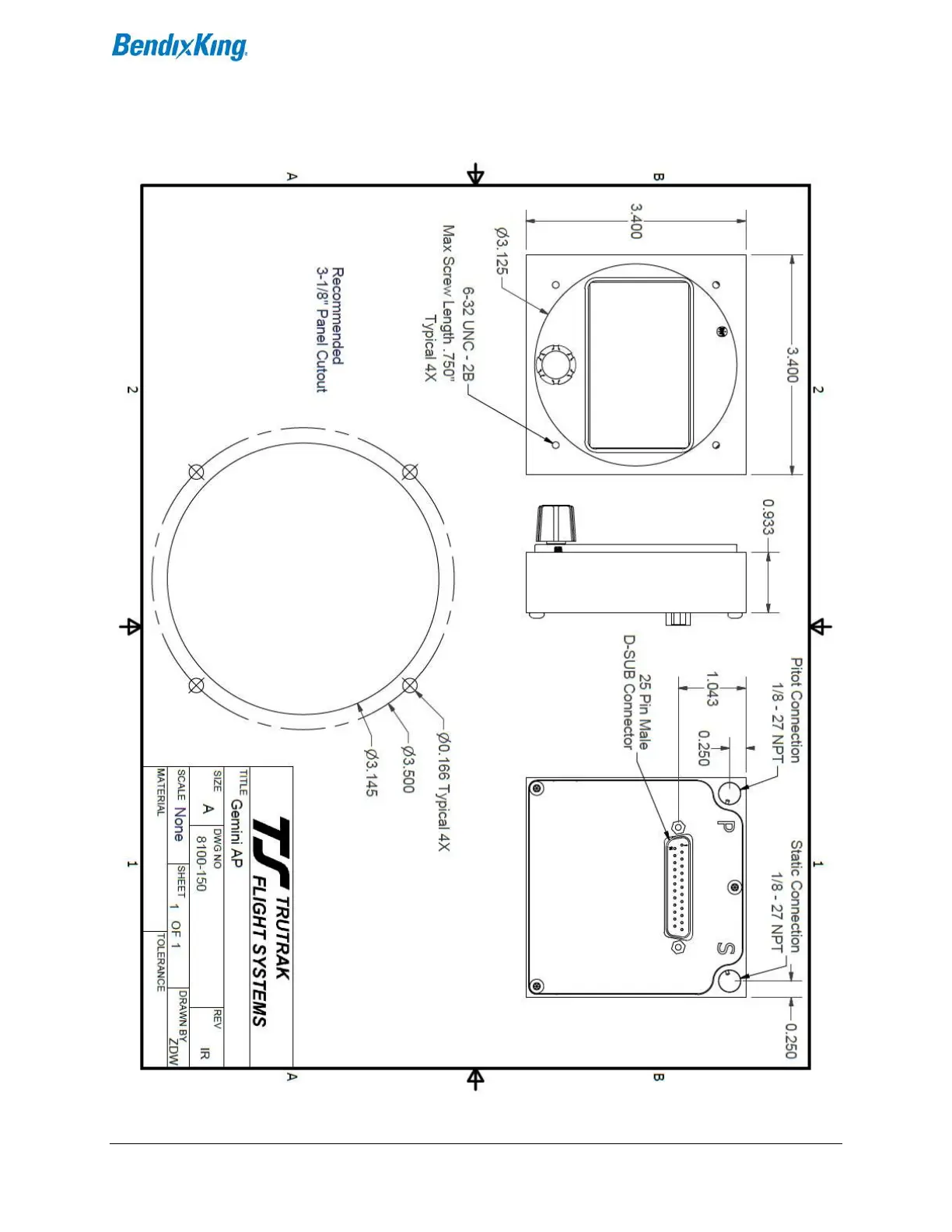 BENDIXKing XCRUZE 110 - Controller Cut-outs and Dimensions; Controller Dimensions and Panel Cutout