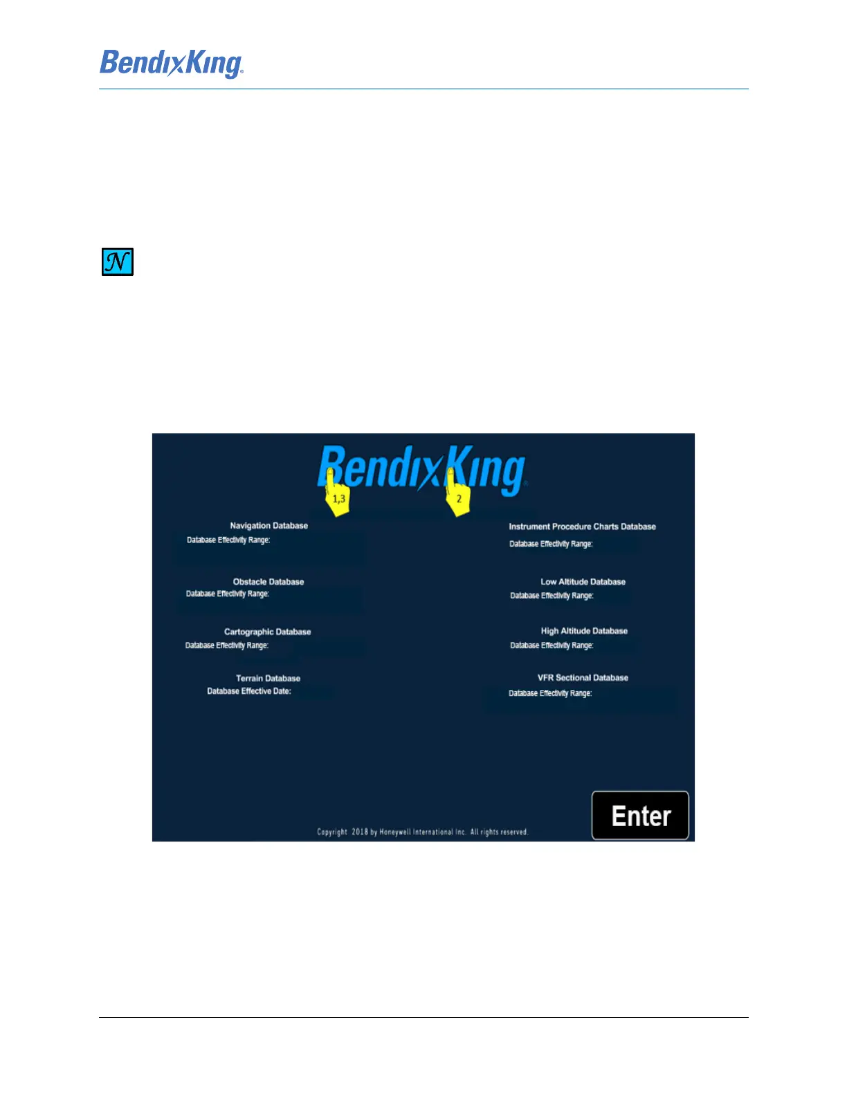 (1) Touch the “B” on the BendixKing logo.