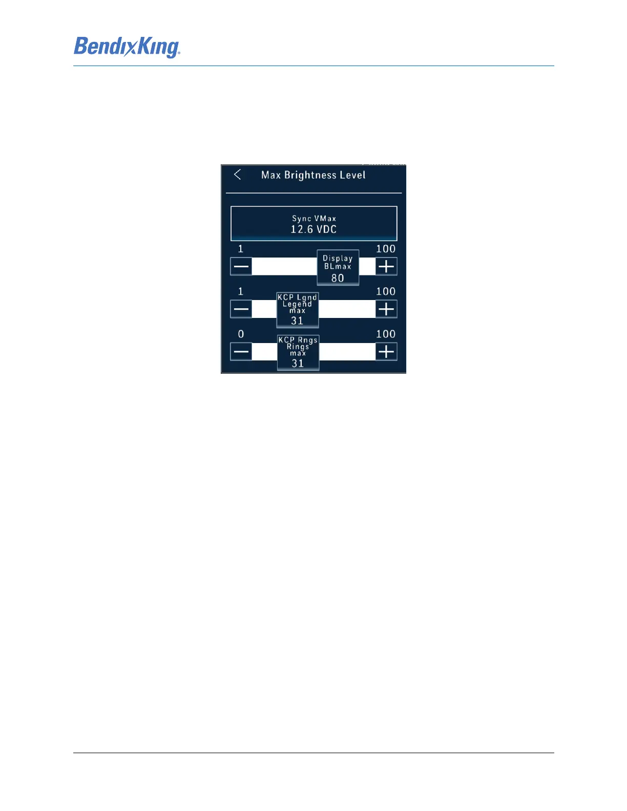 touching the bar or incrementing the + and - buttons to adjust the Display backlight so