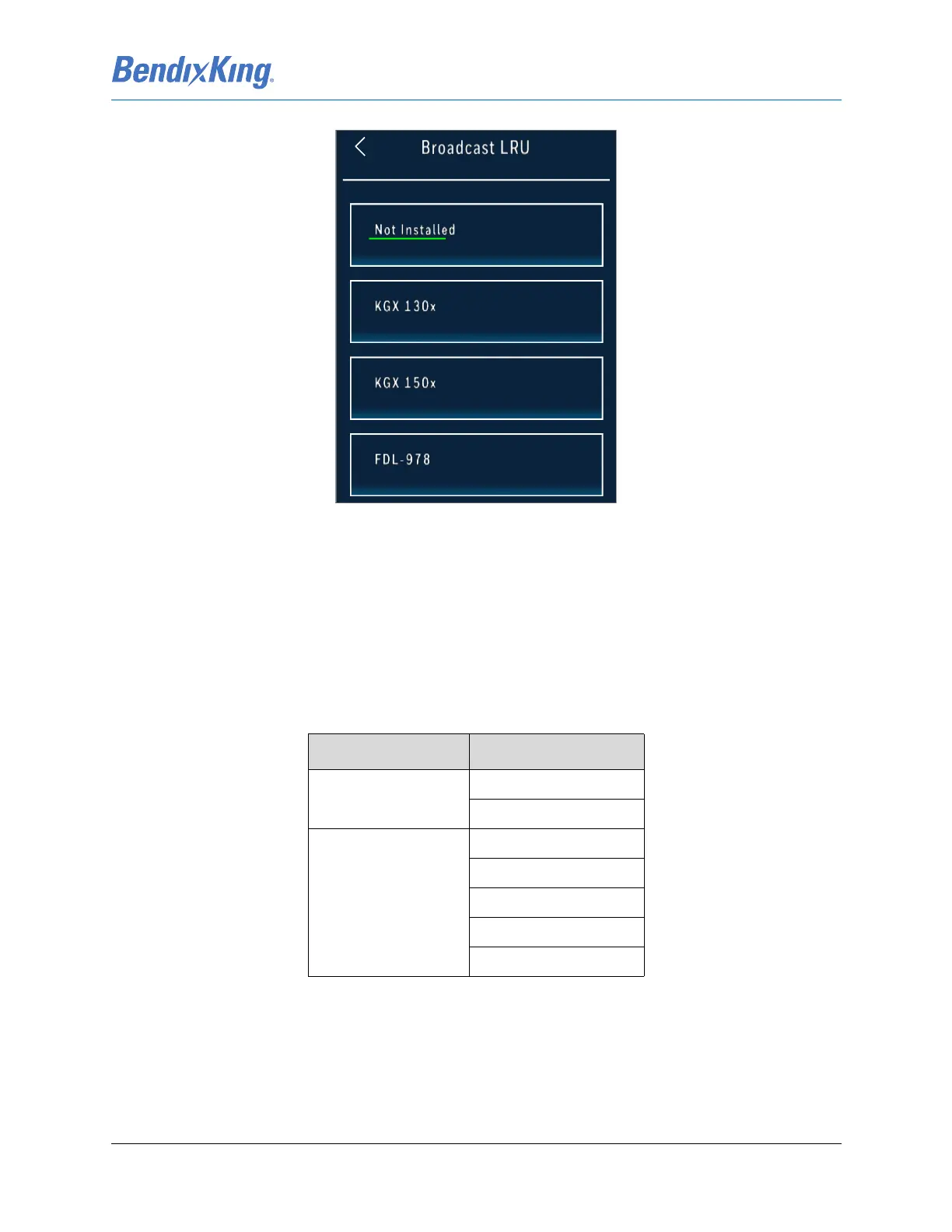 (3) Press the button for the installed Broadcast LRU option from the Broadcast LRU sub-menu,