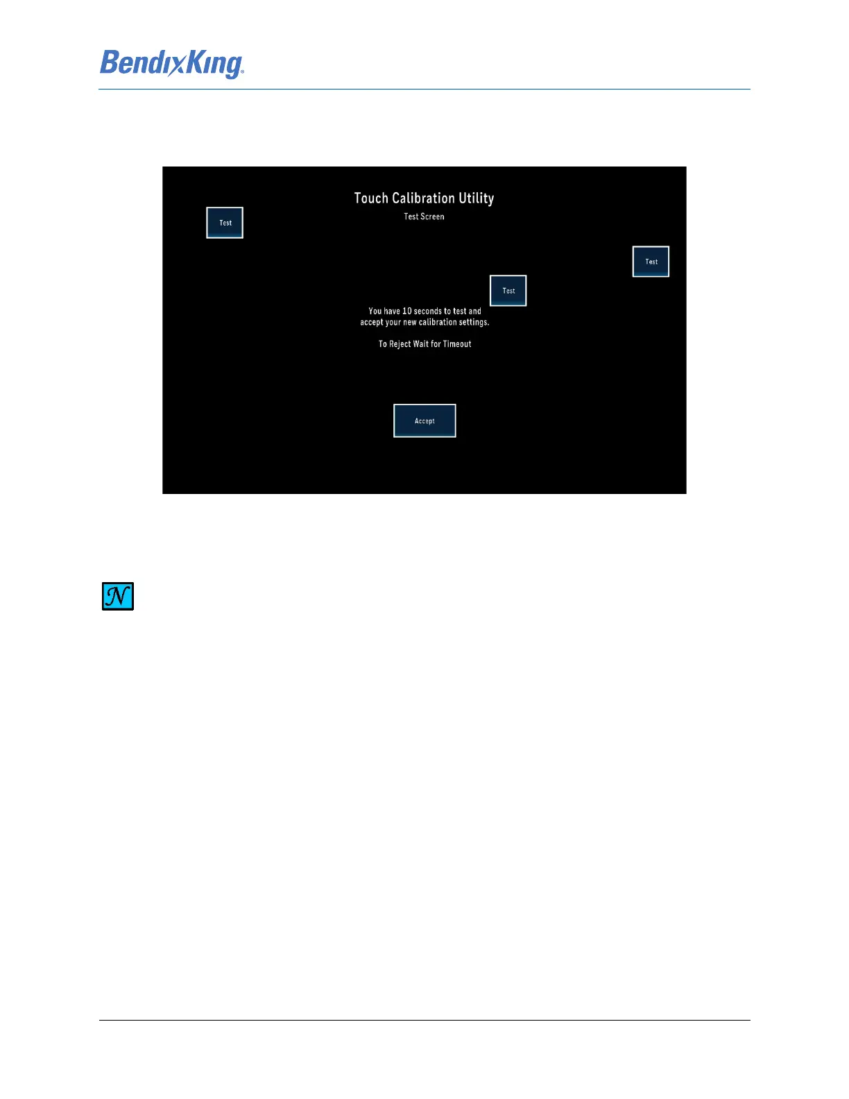 (17) If the current touch calibration is acceptable, the user must press the Accept button before the