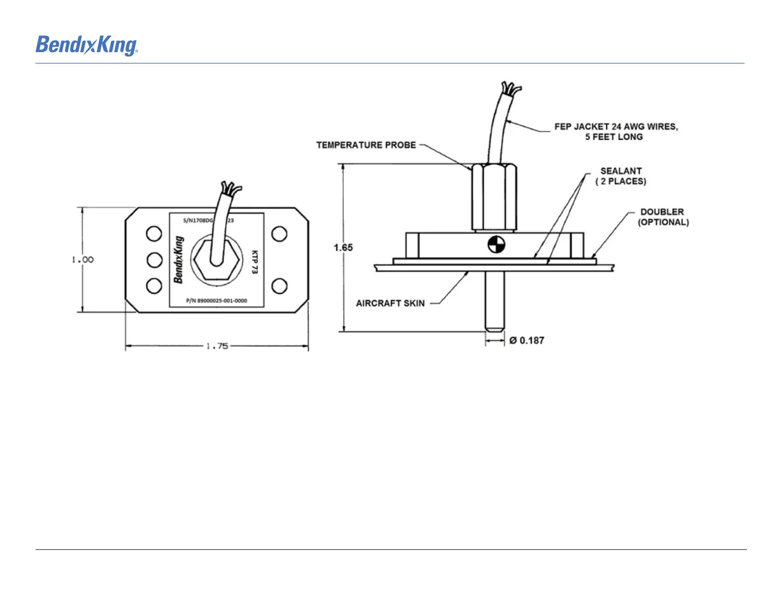BENDIXKing XVUE TOUCH - Figure A-13 KTP 73 Dimensions and Center of Gravity