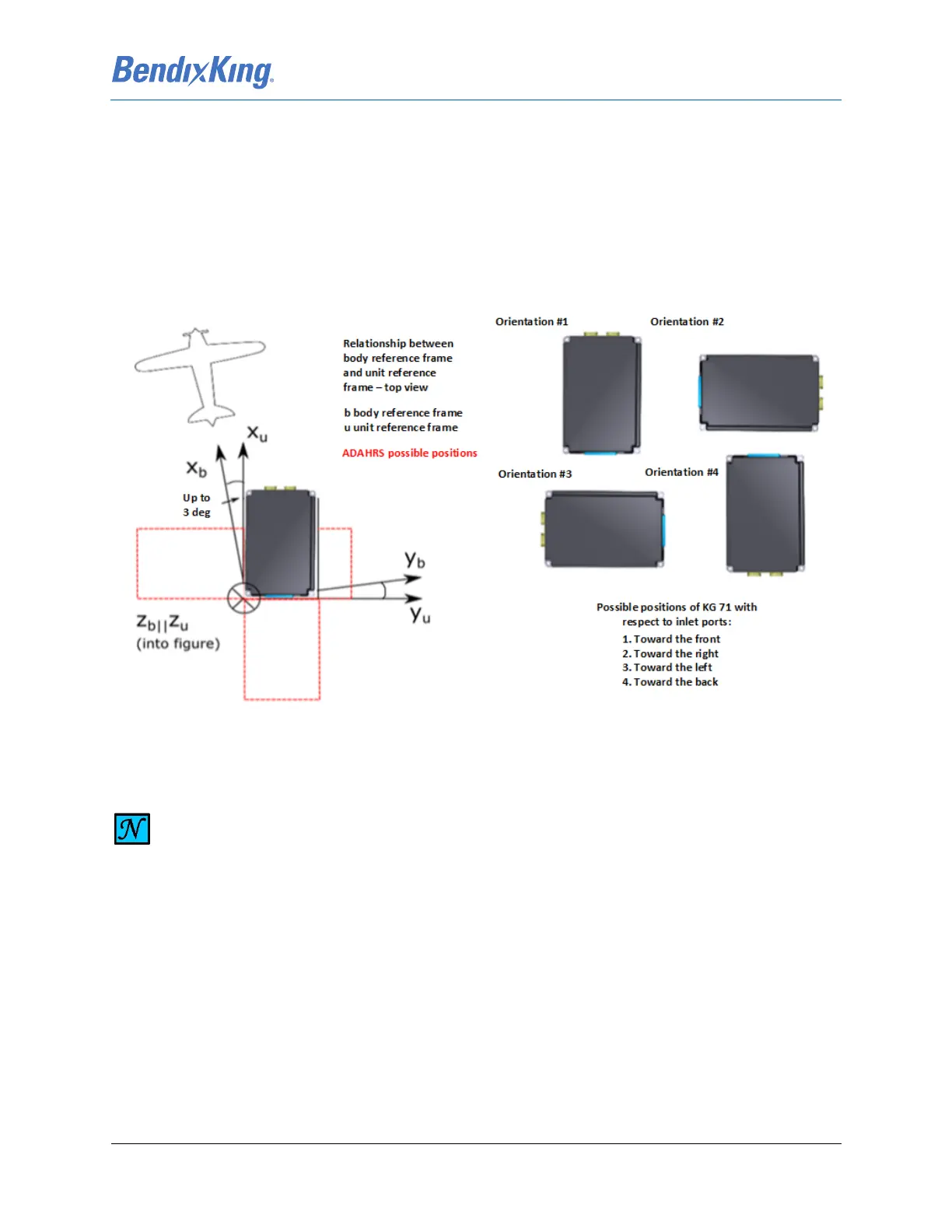 The KG 71EXP installation orientation and alignment with the airplane axis X (longitudinal axis from tail to