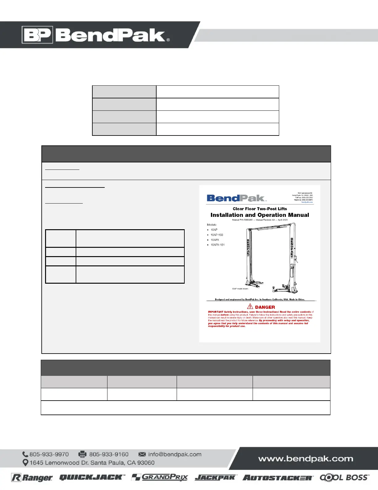 OR BENDPAK ENGINEERING APPROVED EQUIVALENT
