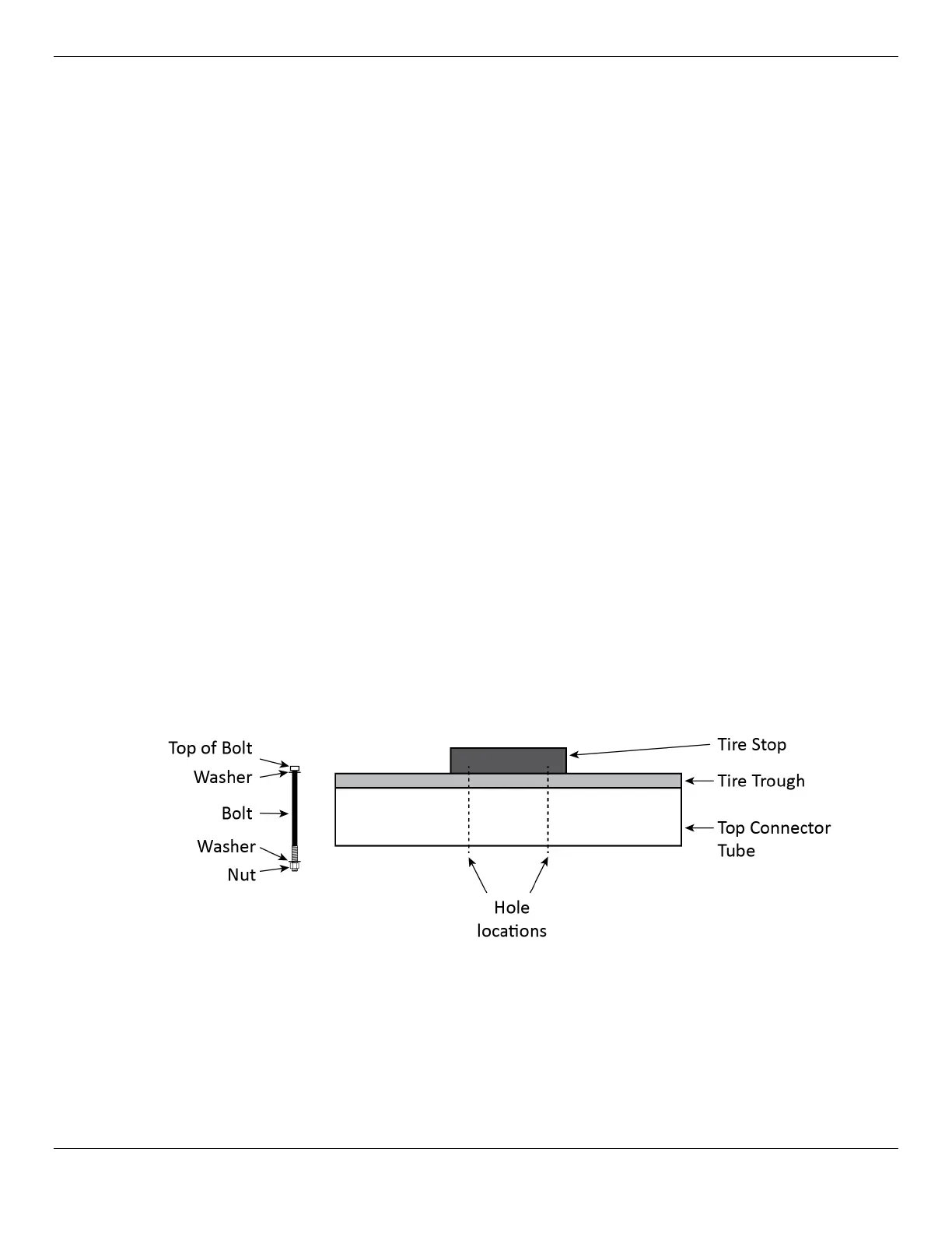 3. Put the Tire Stops on top of the Tire Trough; align the holes in the bottom of the Tire Stops with