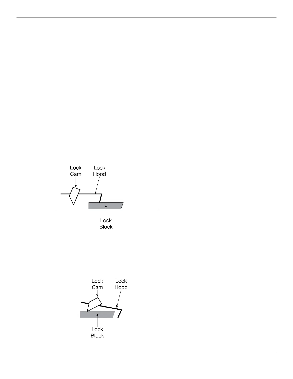 The following drawing shows the Lock Cam and Lock Hood passing over a Lock Block.