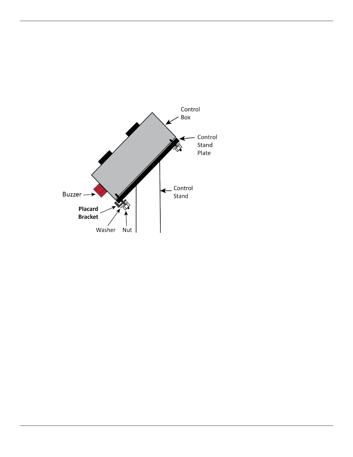 Placard Bracket between the Control Stand Plate and a Washer.
