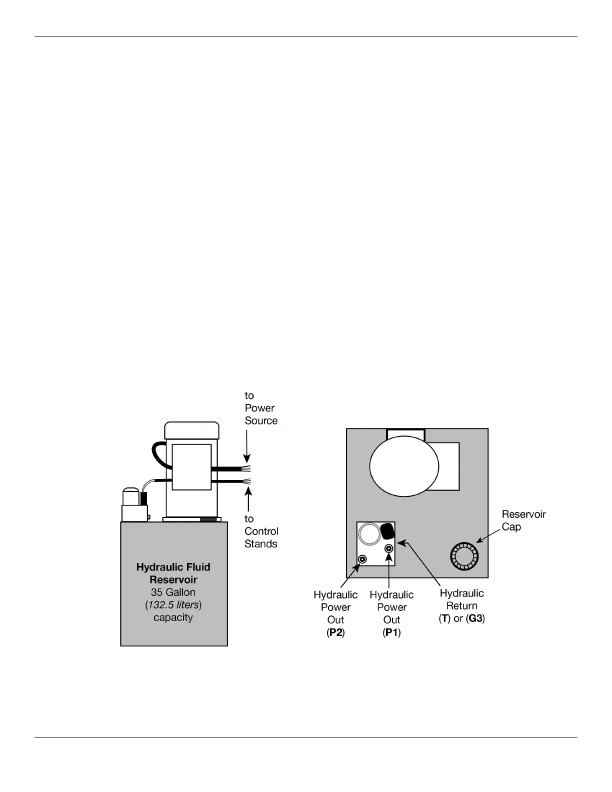 ⚠ CAUTION The Hydraulic Power Ports are almost always labeled P1/P2; the Hydraulic Return