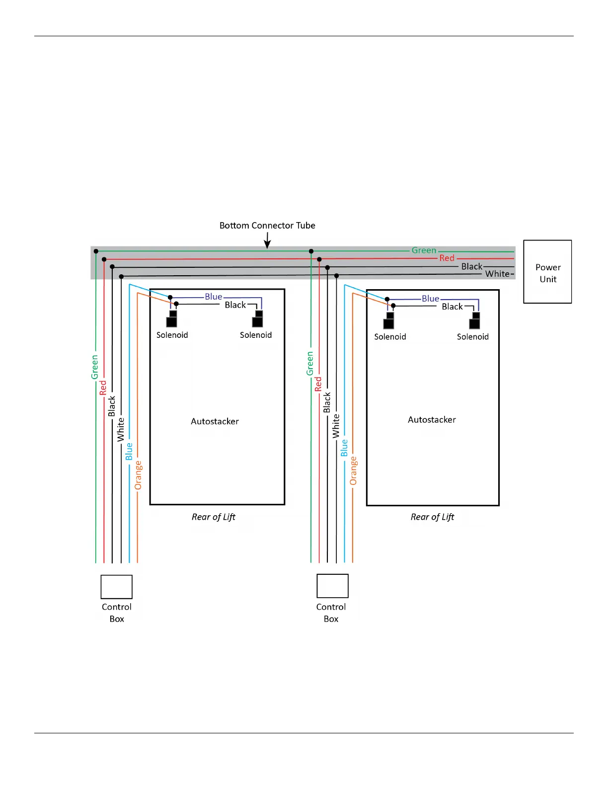 • #16 AWG. Two wires; Black and Blue. Interlinks the two Solenoids on each Lift, and connects to