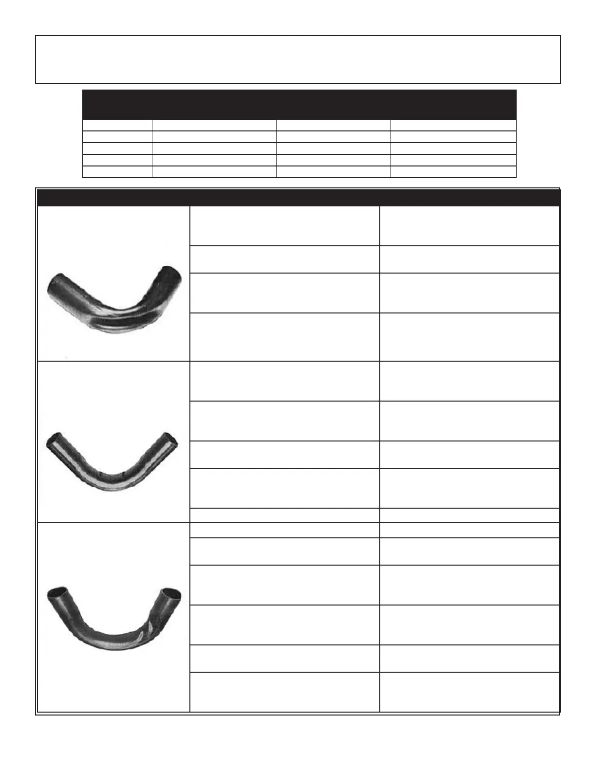 selection. The bigger the tubing diameter, the bigger the radius and wall thickness should be. See the chart