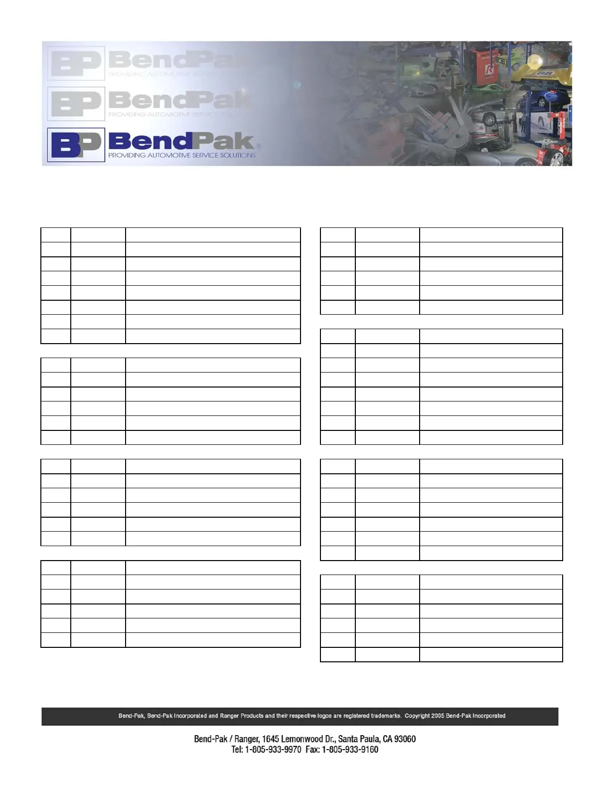 QTY. PART NO. TOOLING DESCRIPTION QTY. PART NO. TOOLING DESCRIPTION