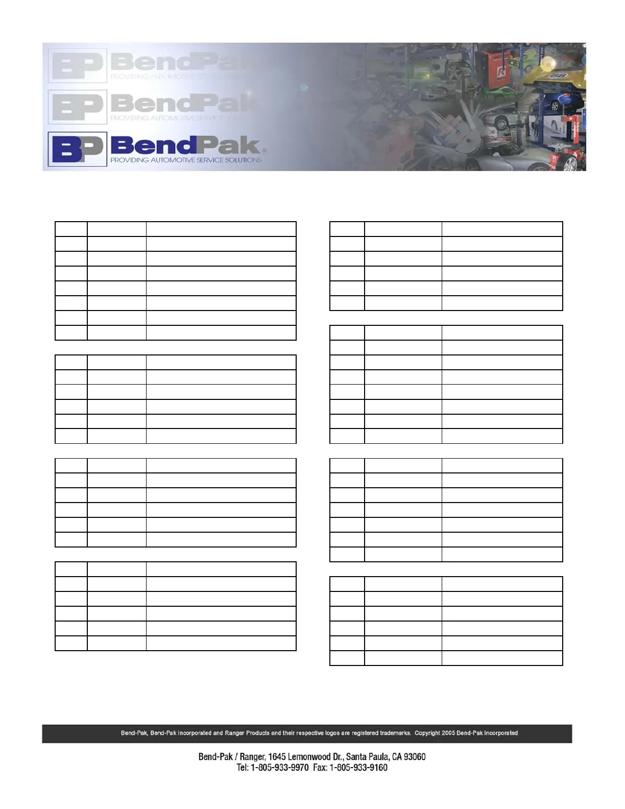 QTY. PART NO. TOOLING DESCRIPTION QTY. PART NO. TOOLING DESCRIPTION