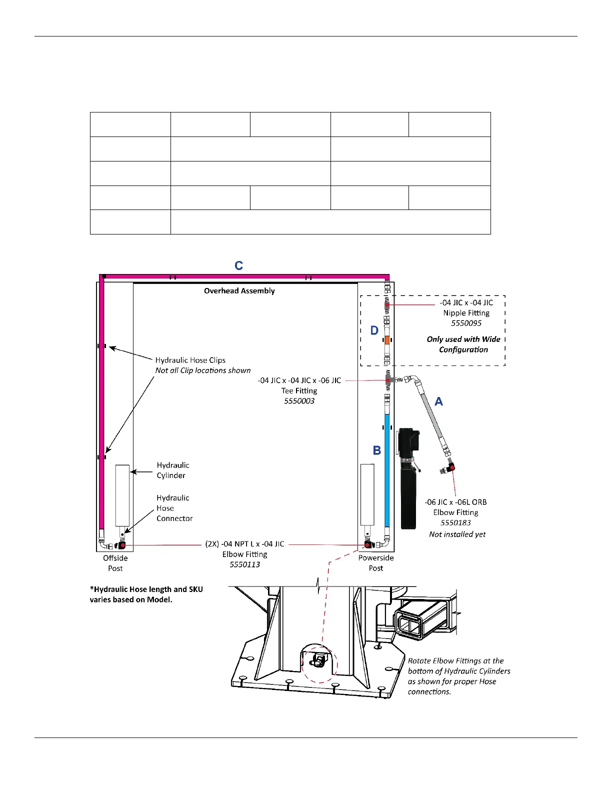 All Hydraulic Hoses and Hydraulic Fitting locations are detailed in the drawing below.