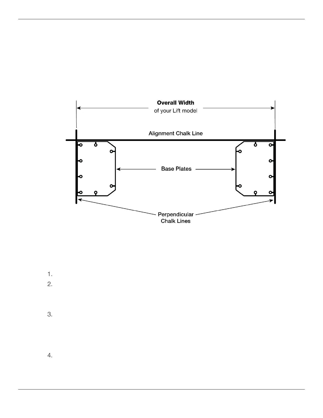 Based on the Specifications for your Lift, create Chalk Line Guides on the ground for the two Posts