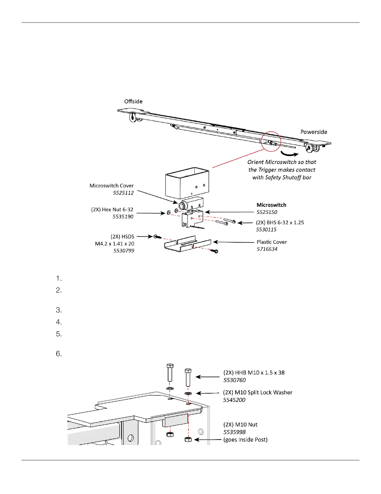 Use the supplied hardware to secure the Microswitch and Microswitch Cover in place.