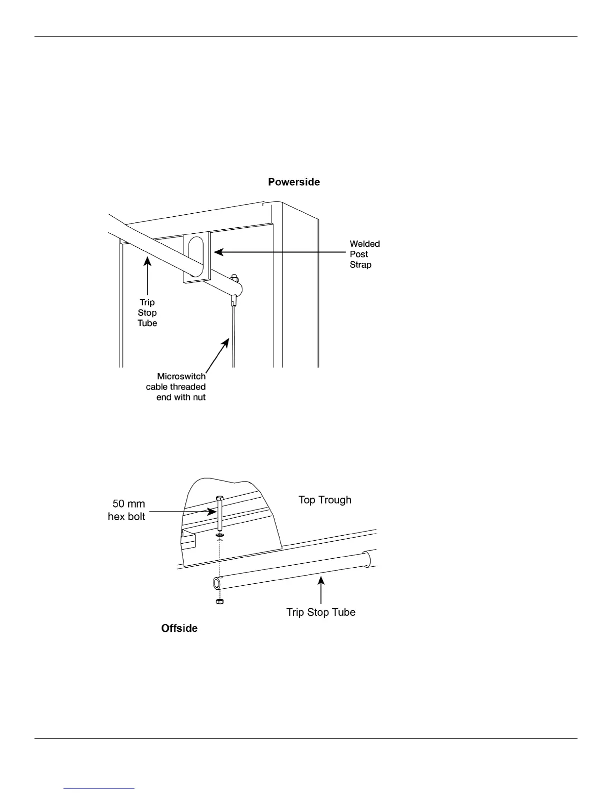 3. On the Offside, secure the other end of the Trip Stop Tube to the underside of the Top Trough