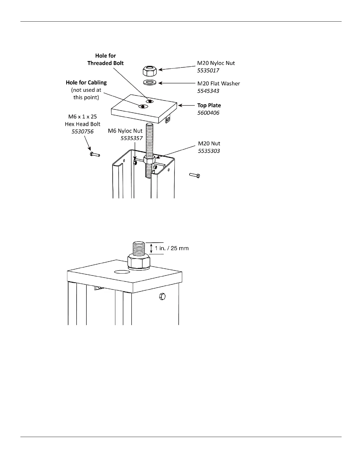 5. Attach a M20 Nyloc Nut on each Safety Ladder until 1 in / 25 mm of thread is above the top of