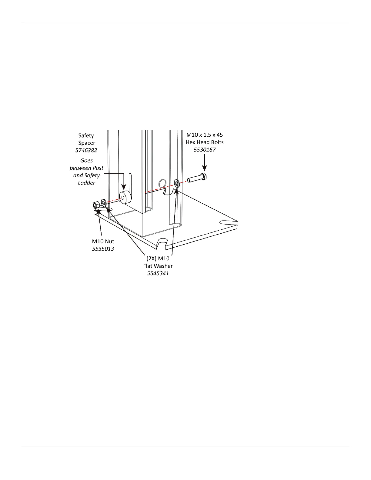 2. Secure the bottom of the Ladders as shown in the drawing below, making sure to orient the