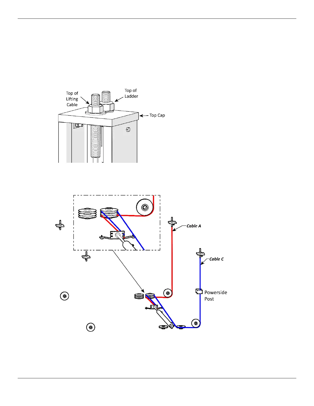 6. Push the Threaded End of Lifting Cable A up to and through the Top Cap (at the top of the Post)