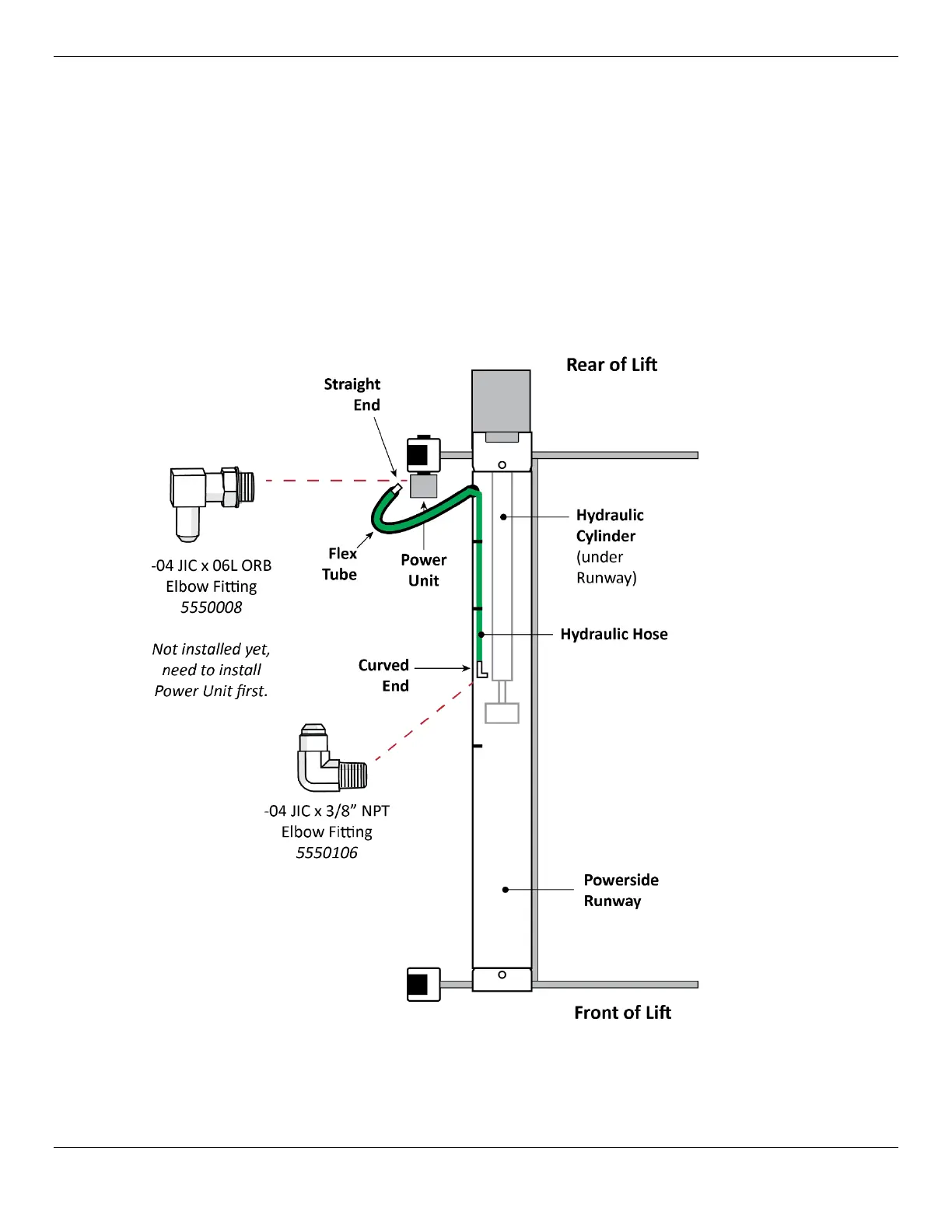 The following drawing shows the connections to make to the Hydraulic Hose.