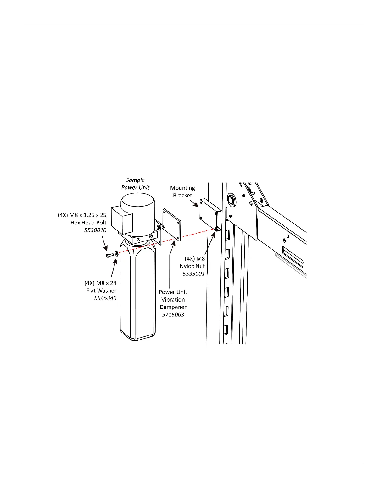 3. Secure the Power Unit and Vibration Dampener to the Mounting Plate using supplied hardware.