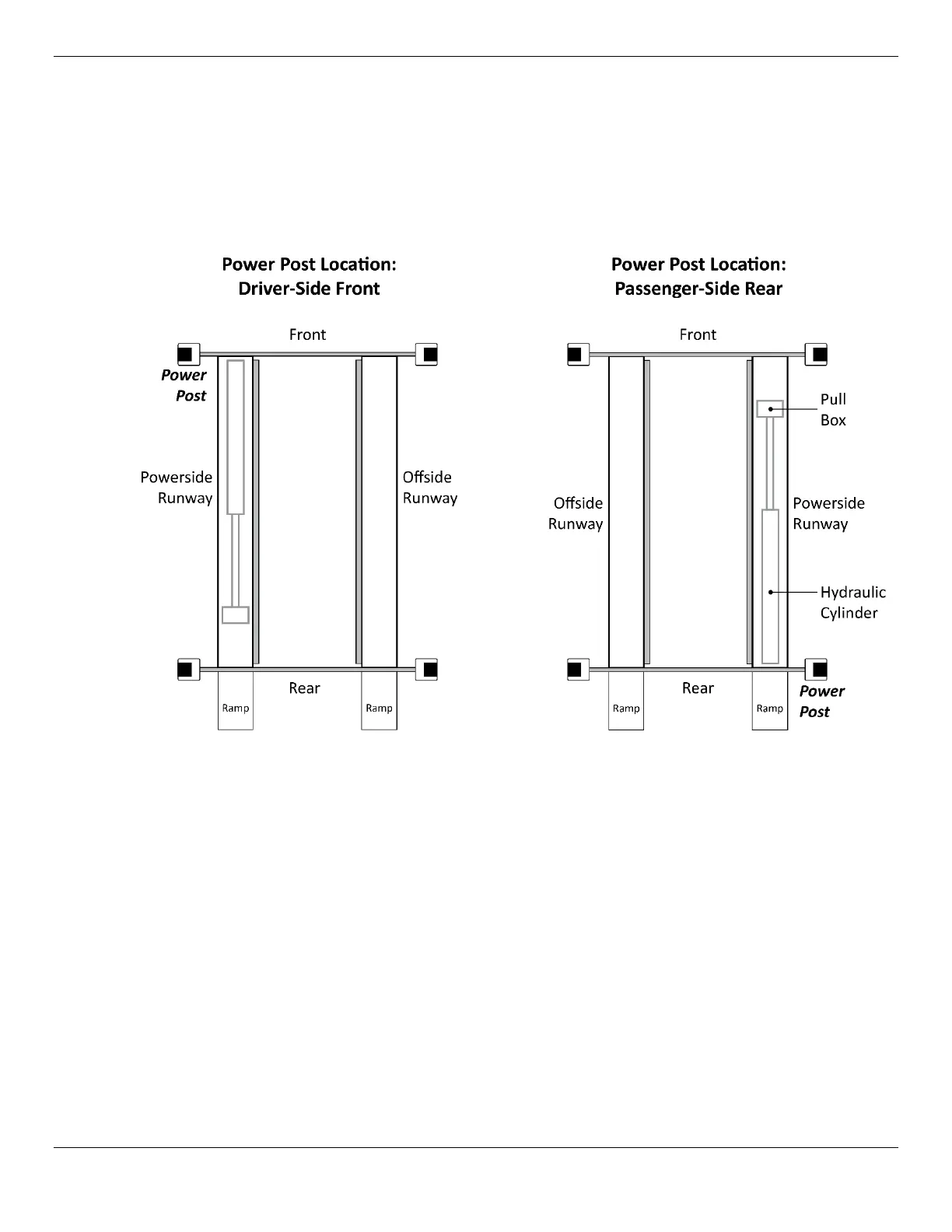 You have two options for Power Post location: Driver-Side Front or Passenger-Side Rear.