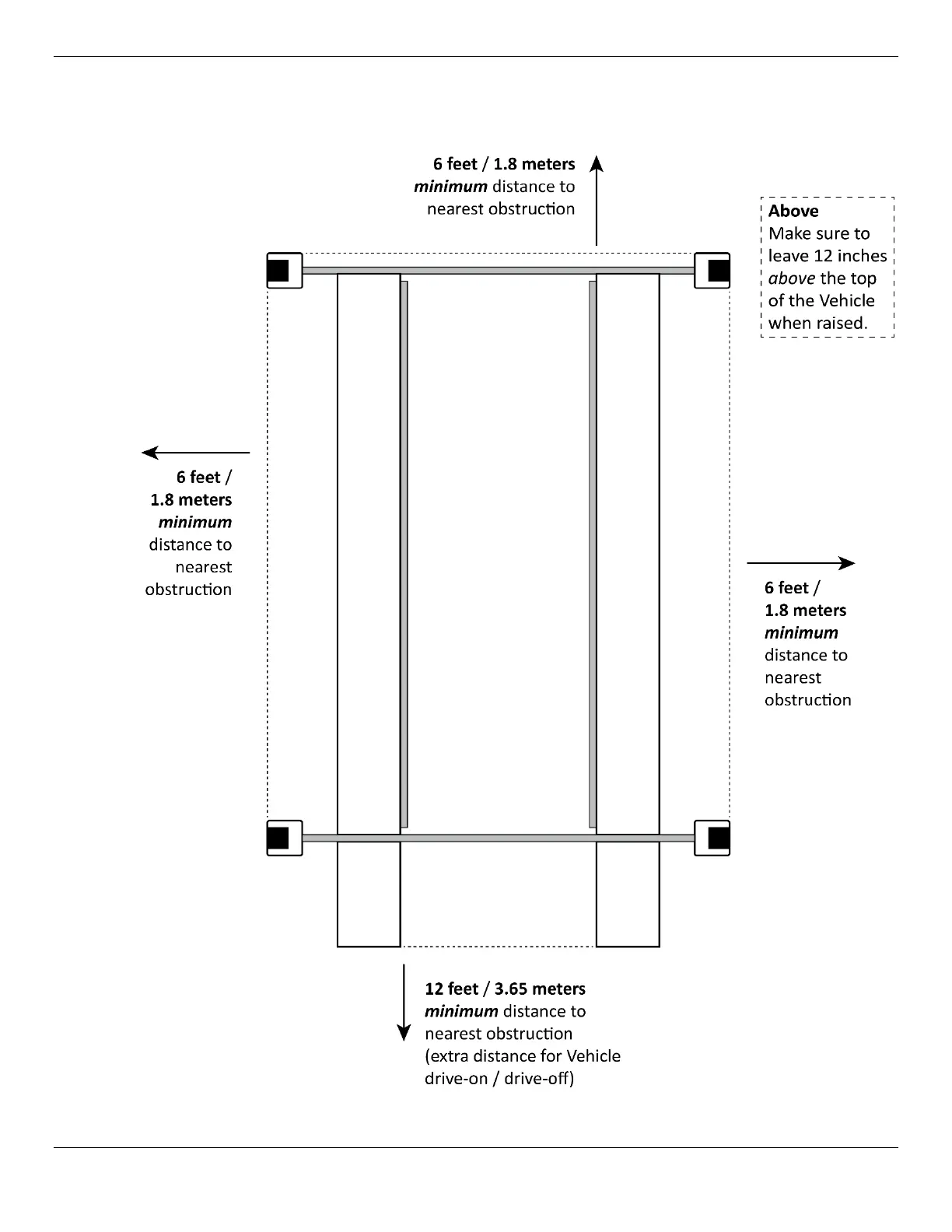 For safety purposes, a certain amount of clear space around the Lift is