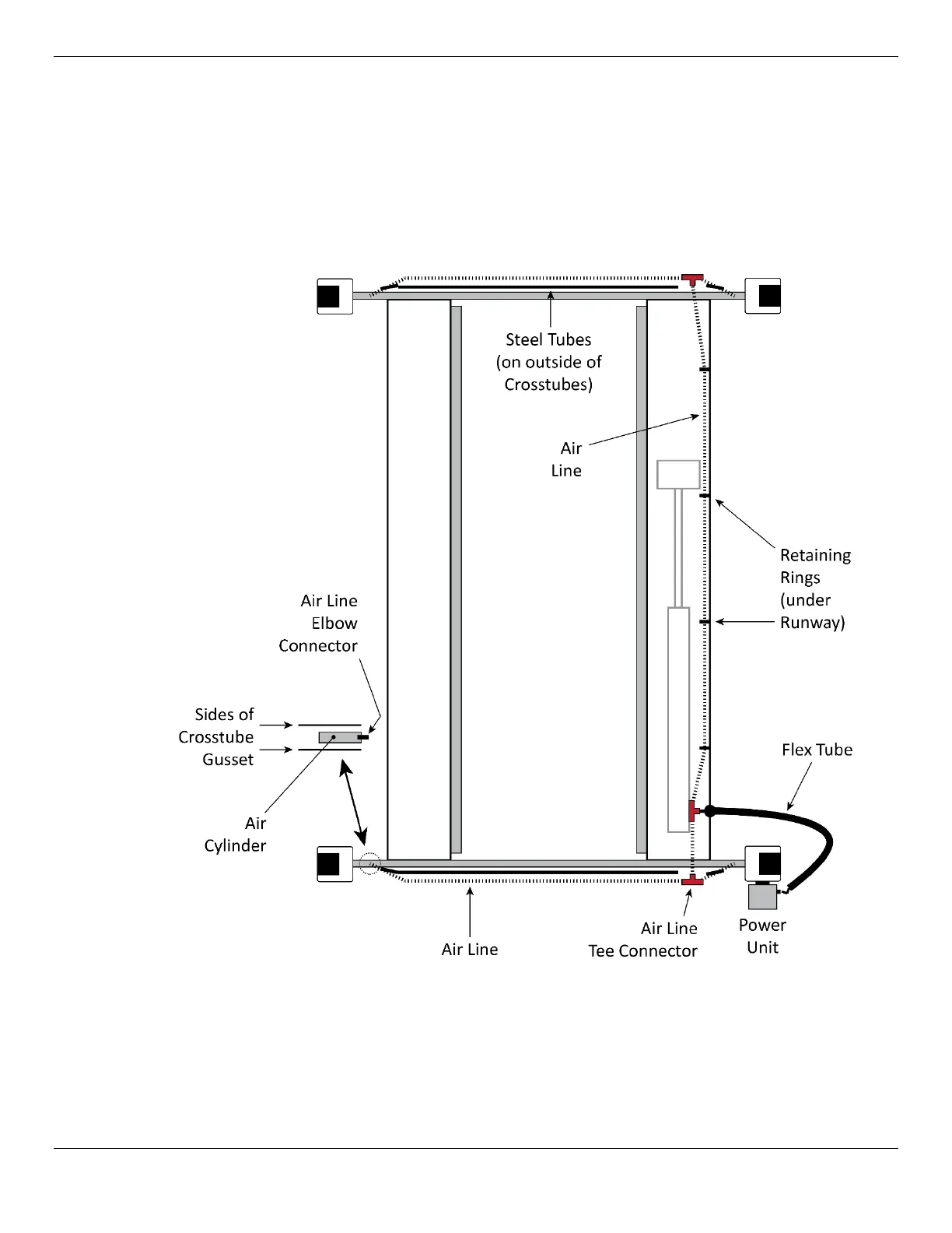 Drawing not to scale. Some components not shown. Air Lines shown outside Steel Tubes for clarity.