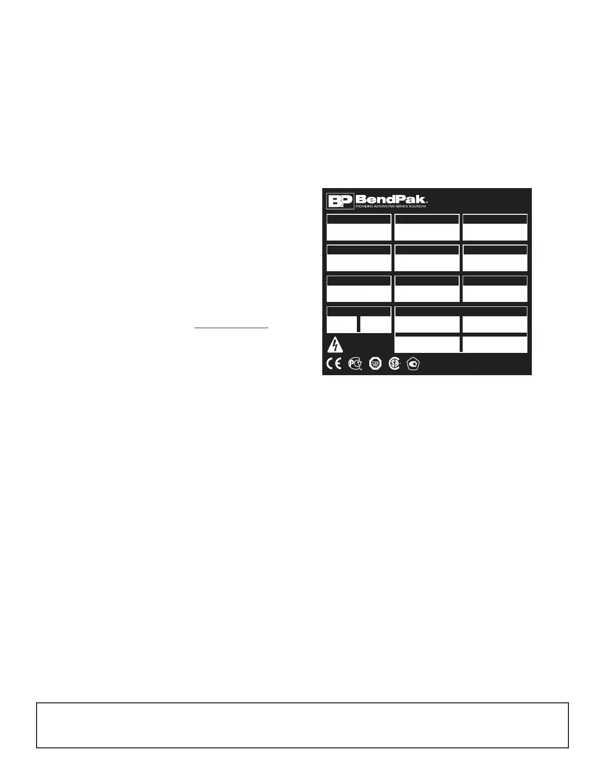 uct updates, revisions and or changes may have occurred since this printing. BendPak Ranger reserves the right to change specica-