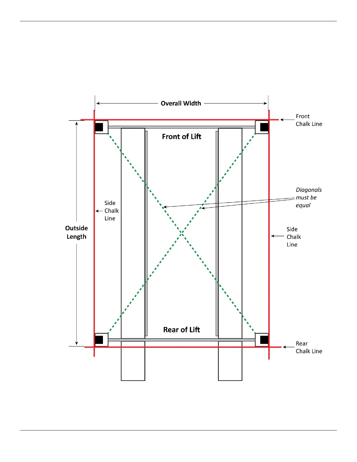 Create Chalk Line Guides so that the outside edges of all four Post bases fit into the four corners