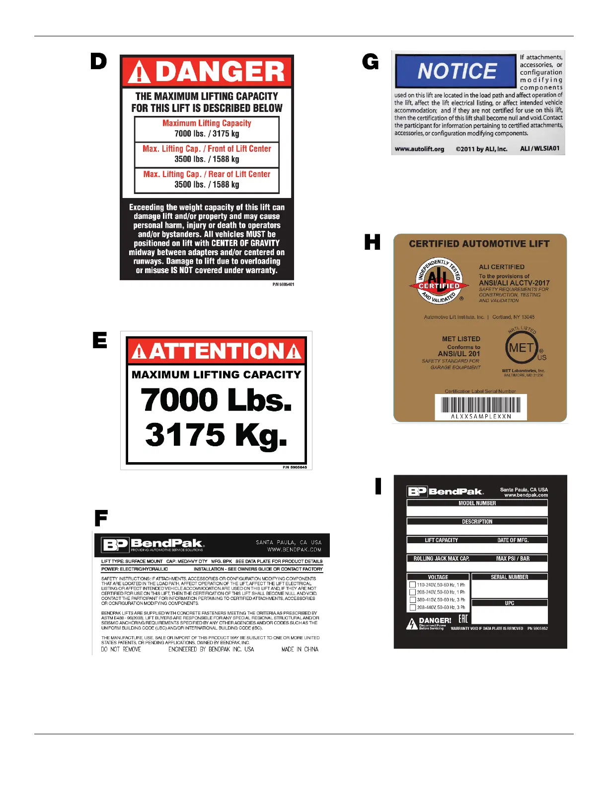 HD-7P / HD-7W Four-Post Lifts 80 P/N 5900041Rev. M July 2019