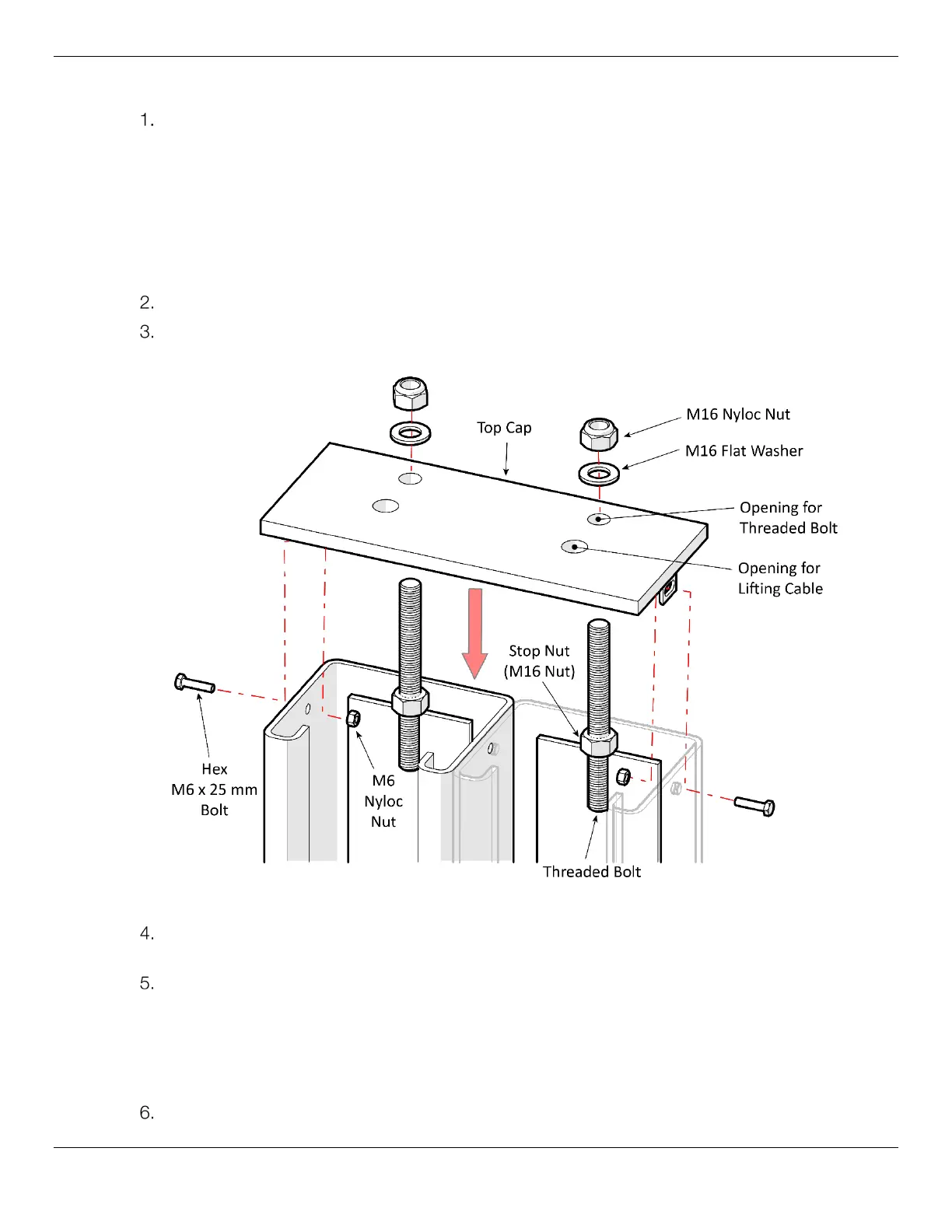 Put the Top Cap onto the top of the Post, securing it on the sides with a Hex Head Bolt and a