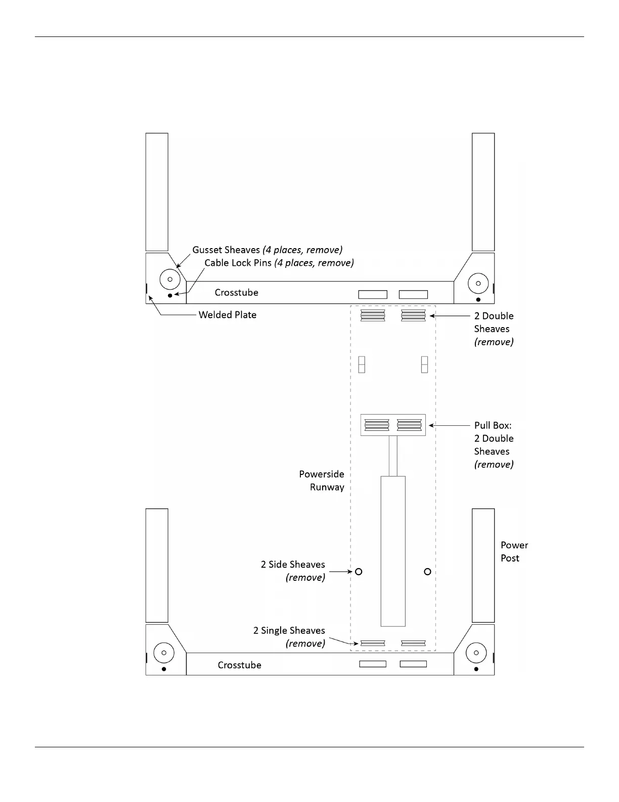 Pull Box and Side Sheaves are for Upper Platform only. Not to scale. Not all components shown.